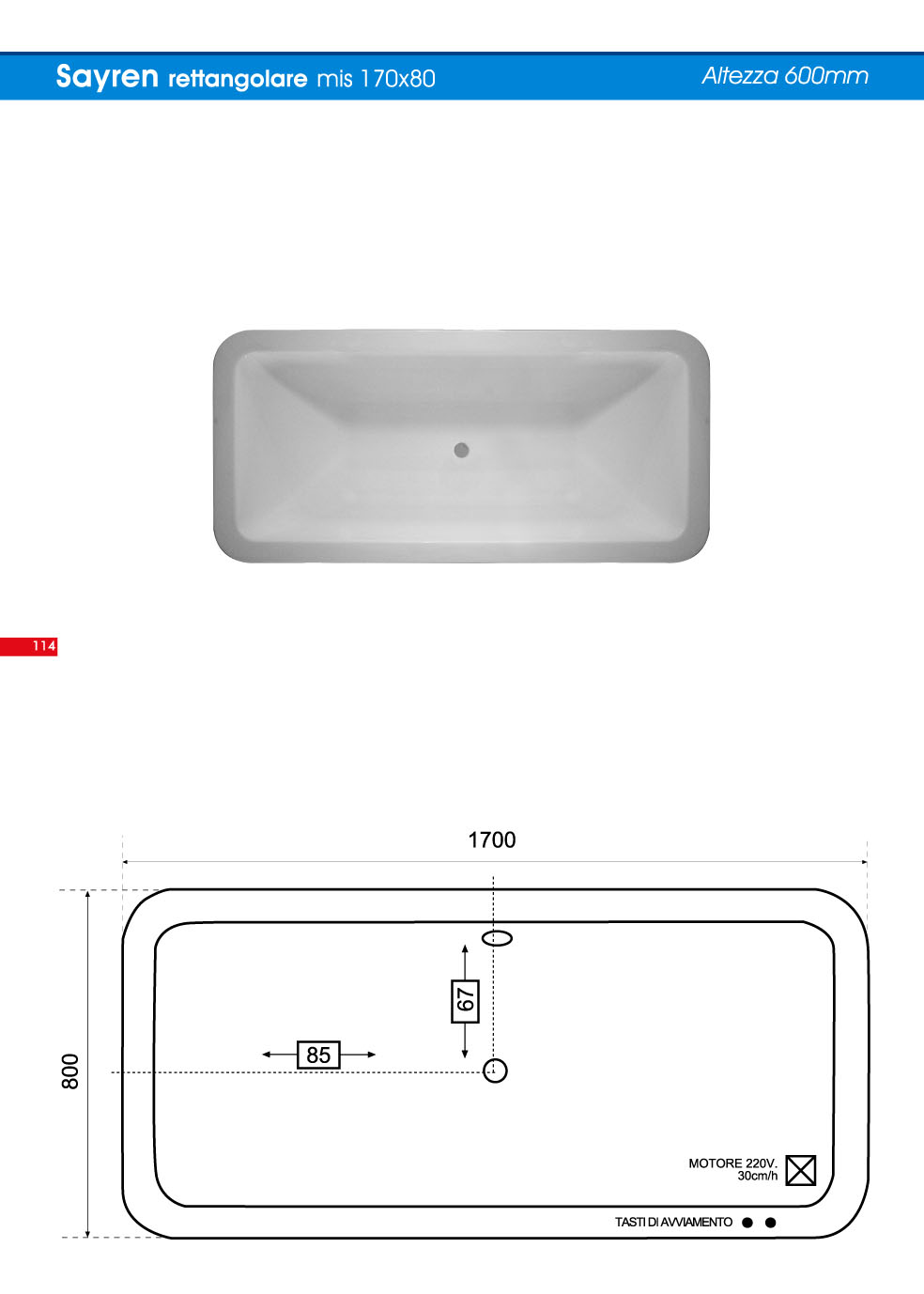 Vasca rettangolare 170x80 cm